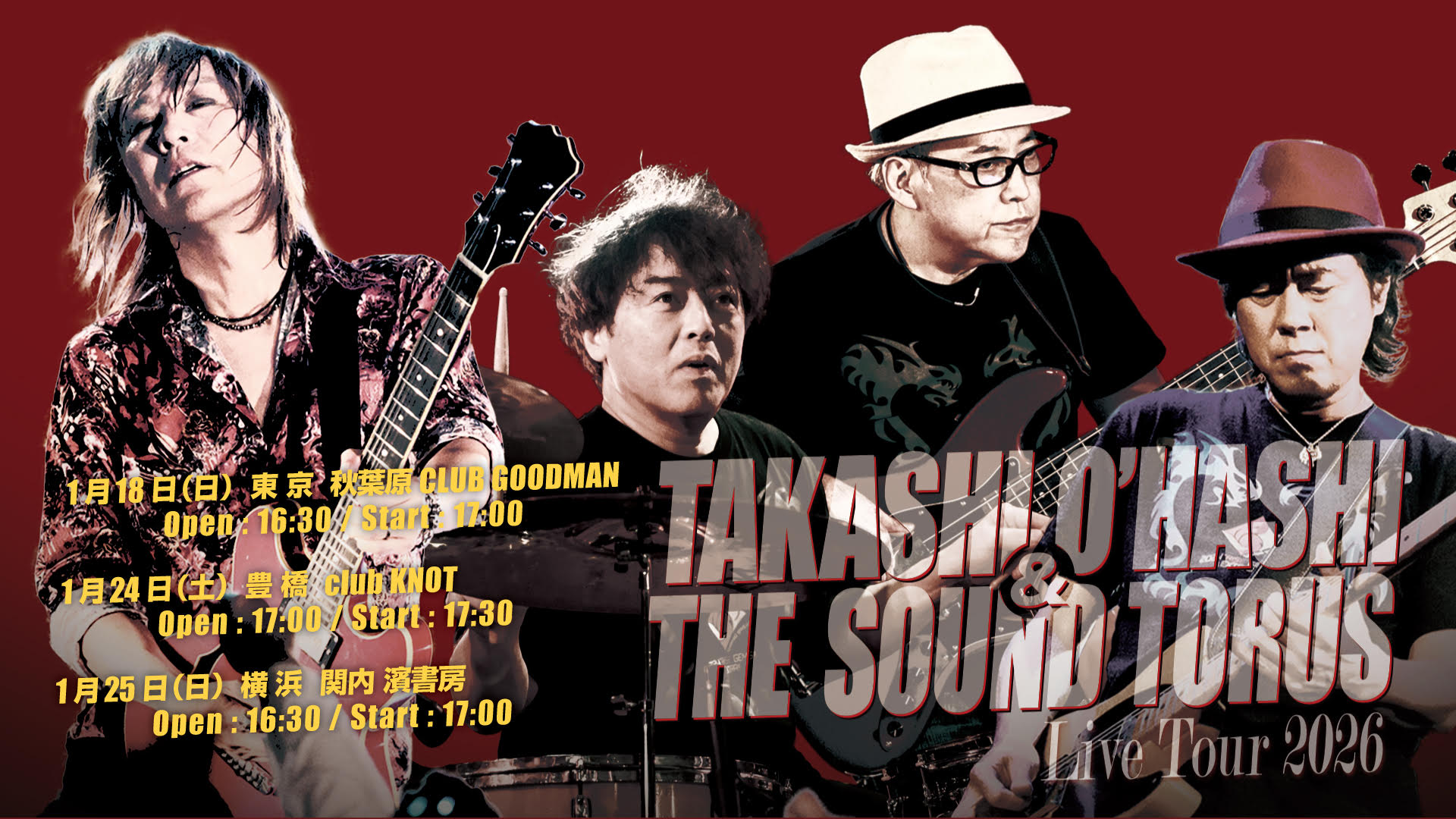 TAKASHI O'HASHI & The Sound Torus(大橋隆志 G,Vo、石川俊介 Bass、田中徹 Drms、扇田裕太郎 G,Vo)